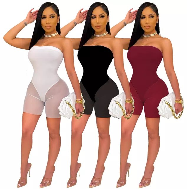 slash neck sexy mesh jump backless summer romper bodycon playsuit shorts